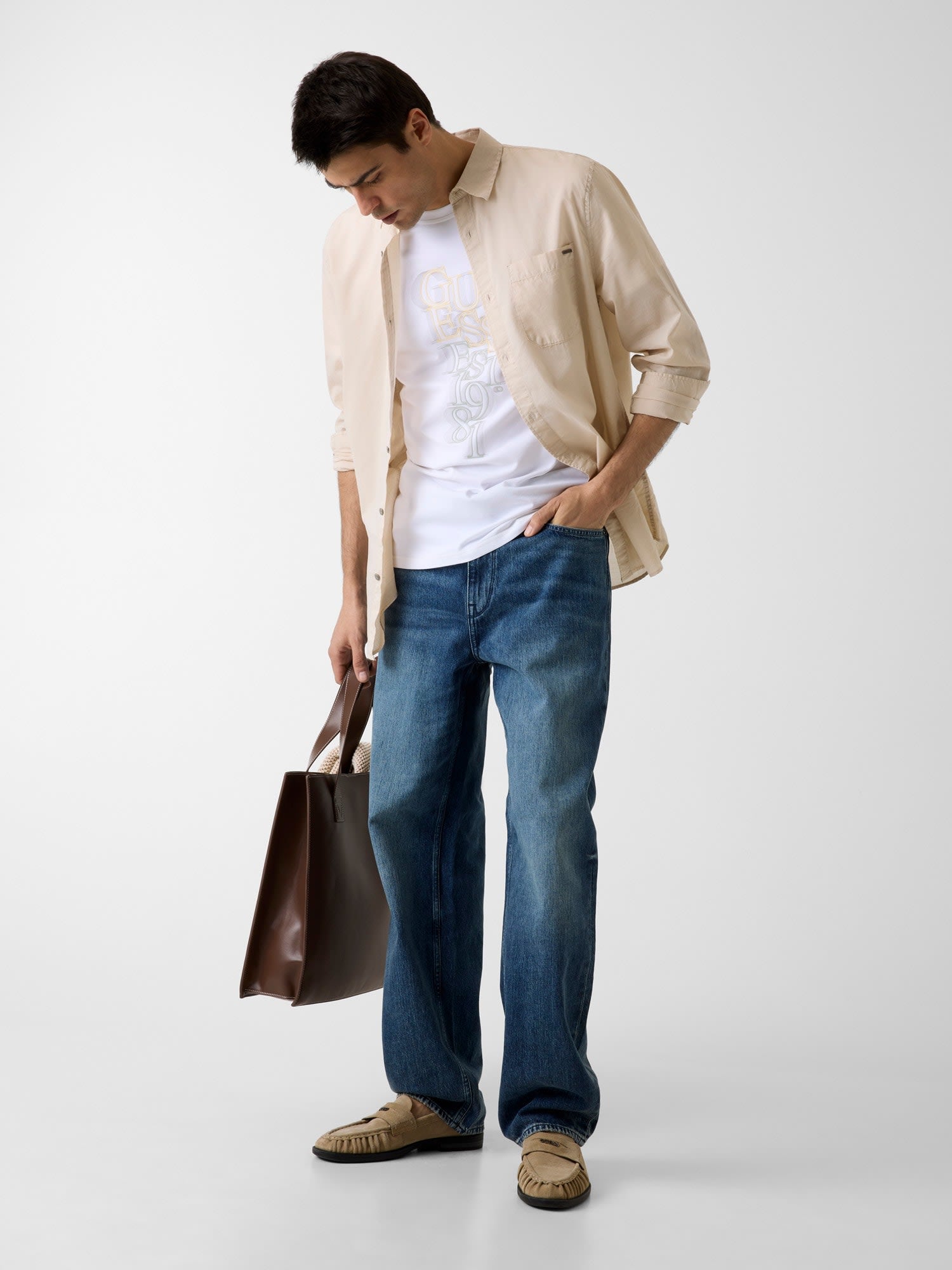 Cn Ss Logo Perspective Tee Jet di Guess. T-shirt nera con grafica GUESS verticale prospettica.